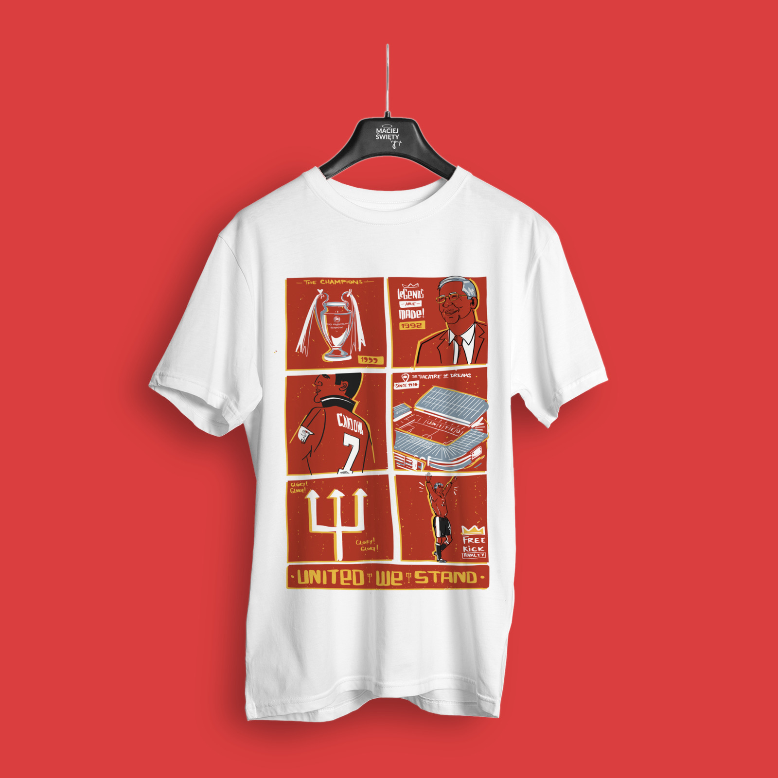 Wybierz jeden z t-shirtów z autorskiej kolekcji Macieja Świętego inspirowanej futbolem. Niepowtarzalne grafiki, często rysowane z przymróżeniem oka, komentujące naszą piłkarską rzeczywistość, upamiętniające historyczne momenty.